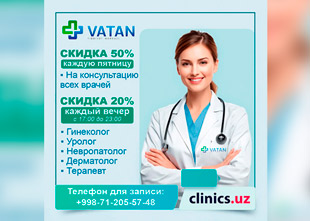 СКИДКА 50% на консультации по пятницам и 20% каждый вечер в клинике Ватан Тиббиёт Маркази