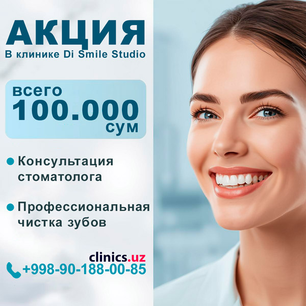 АКЦИЯ — здоровая улыбка всего за 100 000 сум в клинике Di Smile Studio
