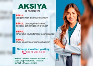BEPUL KONSULTATSIYA malakali shifokorlardan — har juma kuni Hilol Hospital klinikasida!