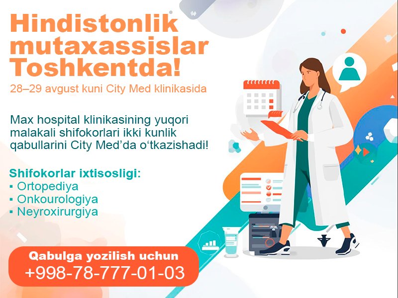 Hindistonlik mutaxassislar Toshkentda! 28–29 avgust kuni City Med klinikasida